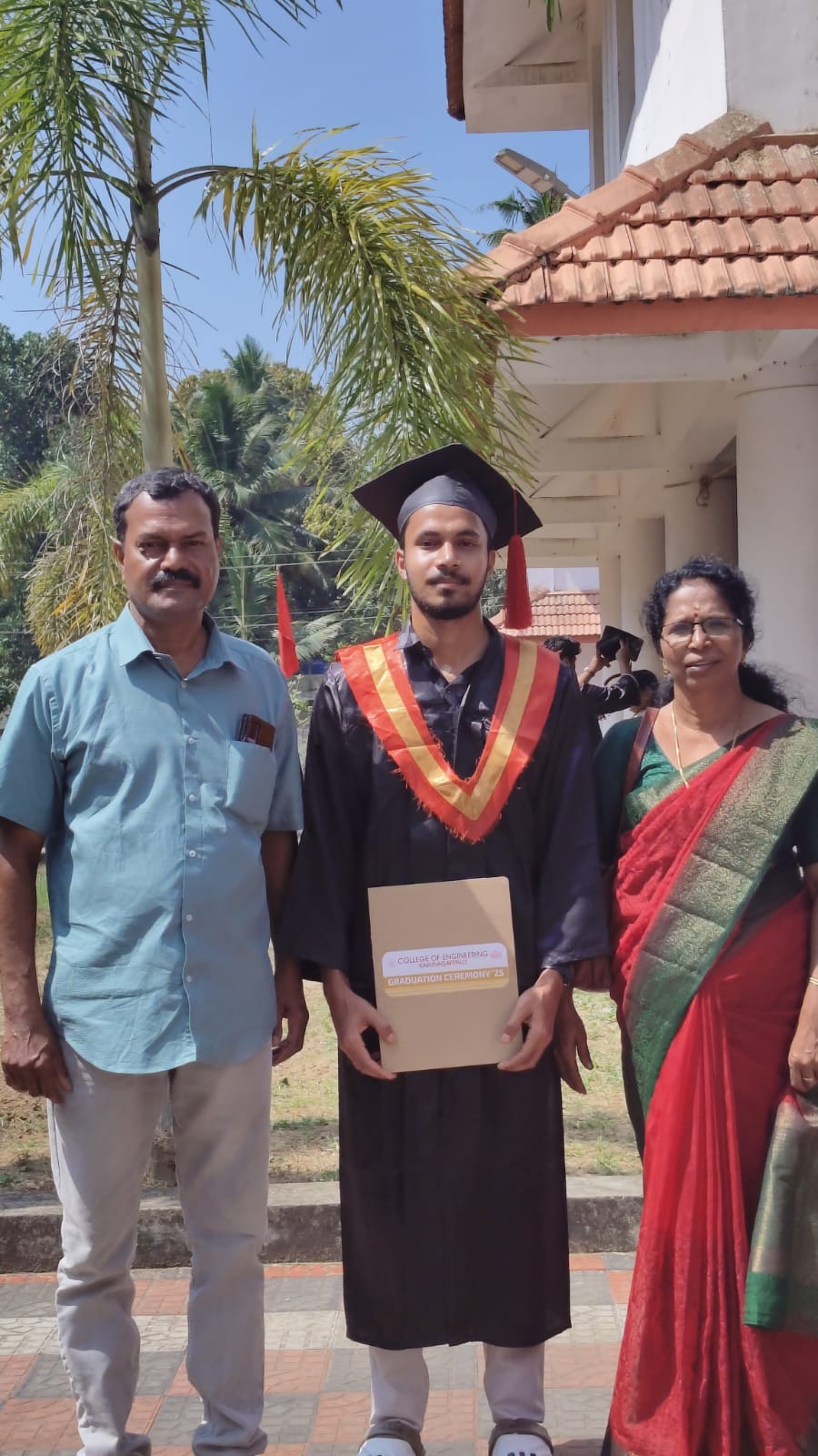 I belong to a small, close-knit family of three members. My mother is a retired Computer Assistant who served at the Government Secretariat, Thiruvananthapuram. My father is currently working as an Attender at a Veterinary Hospital.